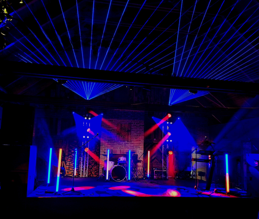 Valgustehnika on väga oluline, sest aitab luua õiget peomeeleolu. Hästi läbimõeldud valguslahendus muudab lavalise visuaali efektseks ning aitab lauludes rõhutada olulisi hetki ja suunata vaatajate tähelepanu laval toimuvale. Meie valguspark(allolev pilt) sisaldab erinevaid liikuvaid valgusteid - spot, beam, wash ja laserid - ning teisi valgusefekte nagu blinderid ja LED-Tubed. Et valgustite võlu eriti esile tuua, kasutame selleks udumasinat.